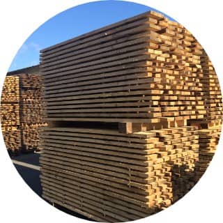 - 製材:選んだ丸太(円)を製材機で角材や板に形造ります。